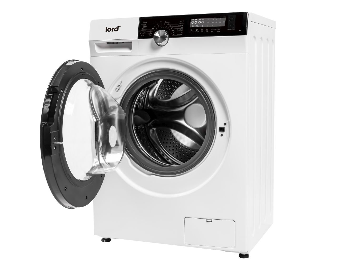 Washer dryer, The Lord W6 front-loading washer-dryer is an extremely reliable, modern, front-loading washer in very economical energy class B for washing and class E for washing and drying. The Lord philosophy is to offer only honestly made products. Of course, you must not damage the washing machine yourself. Thanks to its depth of 47.5 cm, it will be especially suitable for bathrooms that are tight on space, as it unites two appliances into one, thus saving space and money and becoming your ideal home helper. The W6 washing machine will be the silent partner of the household; its noise level is only 76 dB when spinning. The large, clear display allows constant monitoring of the selected programmes, makes choosing settings easy and continuously informs you about the progress of the washing cycle. Find out below why the Lord brand is so unique and what benefits the Lord W6 washer-dryer offers.