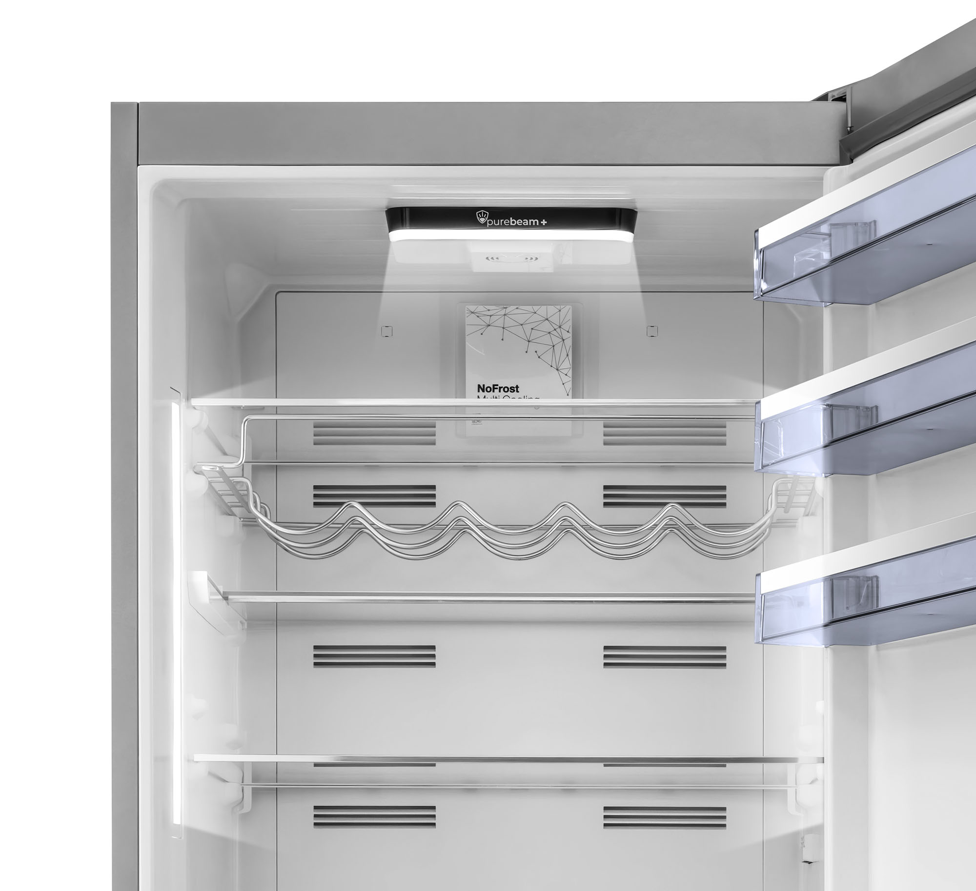 Благодаря автоматической дезинфекции холодильной камеры с помощью УФ-лампы в пищу не должны попасть опасные бактерии или вирусы. Кроме того, угольный фильтр устраняет неприятные запахи в холодильнике, а это значит, что ваши продукты не только будут дольше храниться, но и станут вкуснее. И все это без каких-либо усилий и обслуживания со стороны владельца. PureBeam+ — это идеальный выбор для тех, кто хочет быть уверенным, что их еда всегда безопасна и свежа.