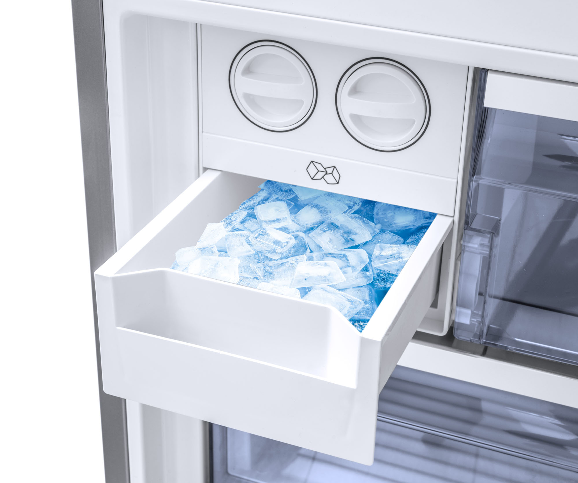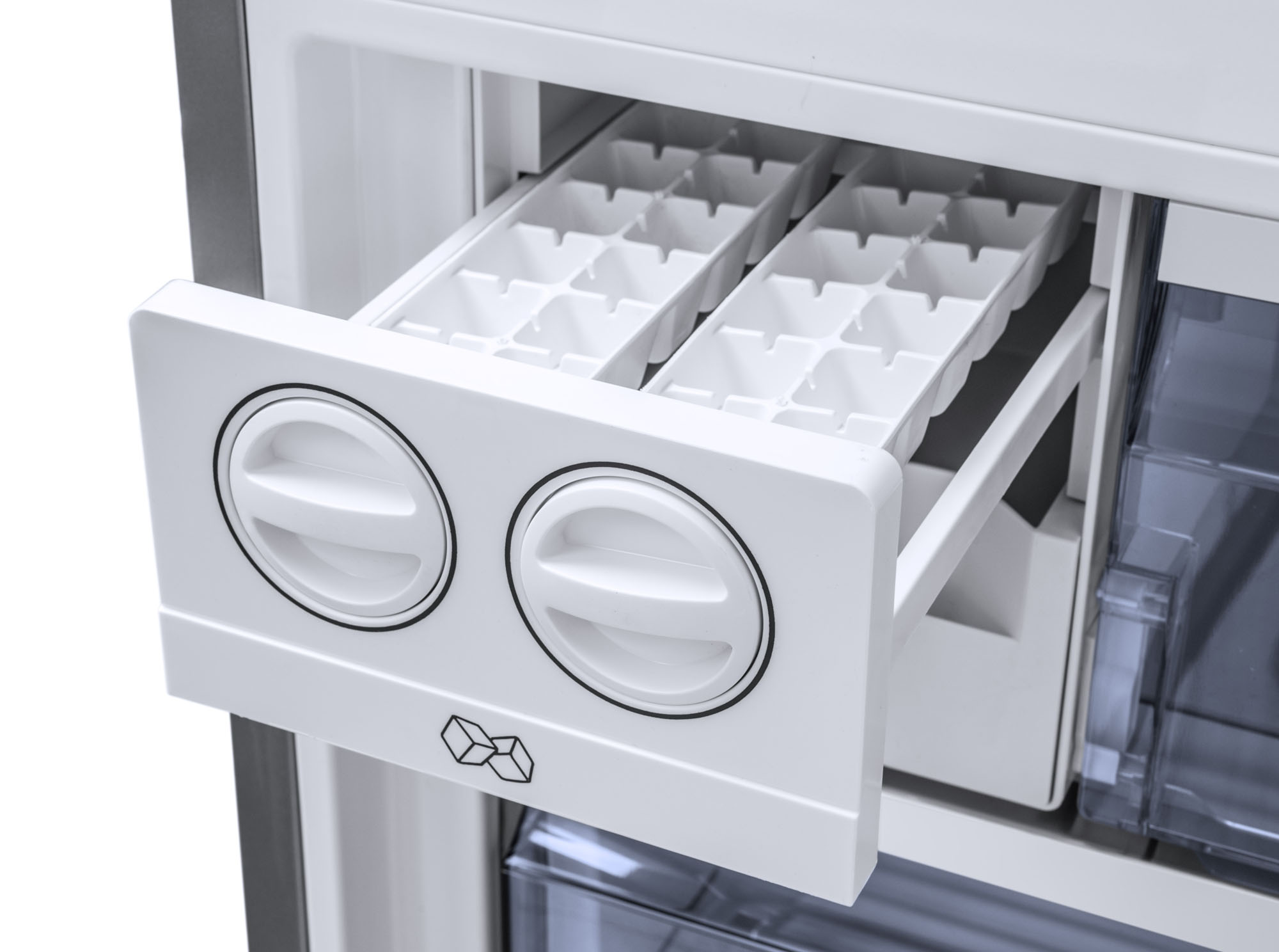 Объем морозильной камеры 137 литров, здесь есть два просторных выдвижных ящика и одна стеклянная полка с откидной дверцей, которую можно использовать для хранения различных пищевых контейнеров. Для удобного приготовления освежающих напитков у C11 есть встроенный генератор льда, к которому не нужно подключать какое-либо дополнительное оборудование. Достаточно просто налить воду в миски в верхней части и дождаться, когда она замерзнет. Затем, просто повернуть ручку и кубики льда выпадут в контейнер внизу.