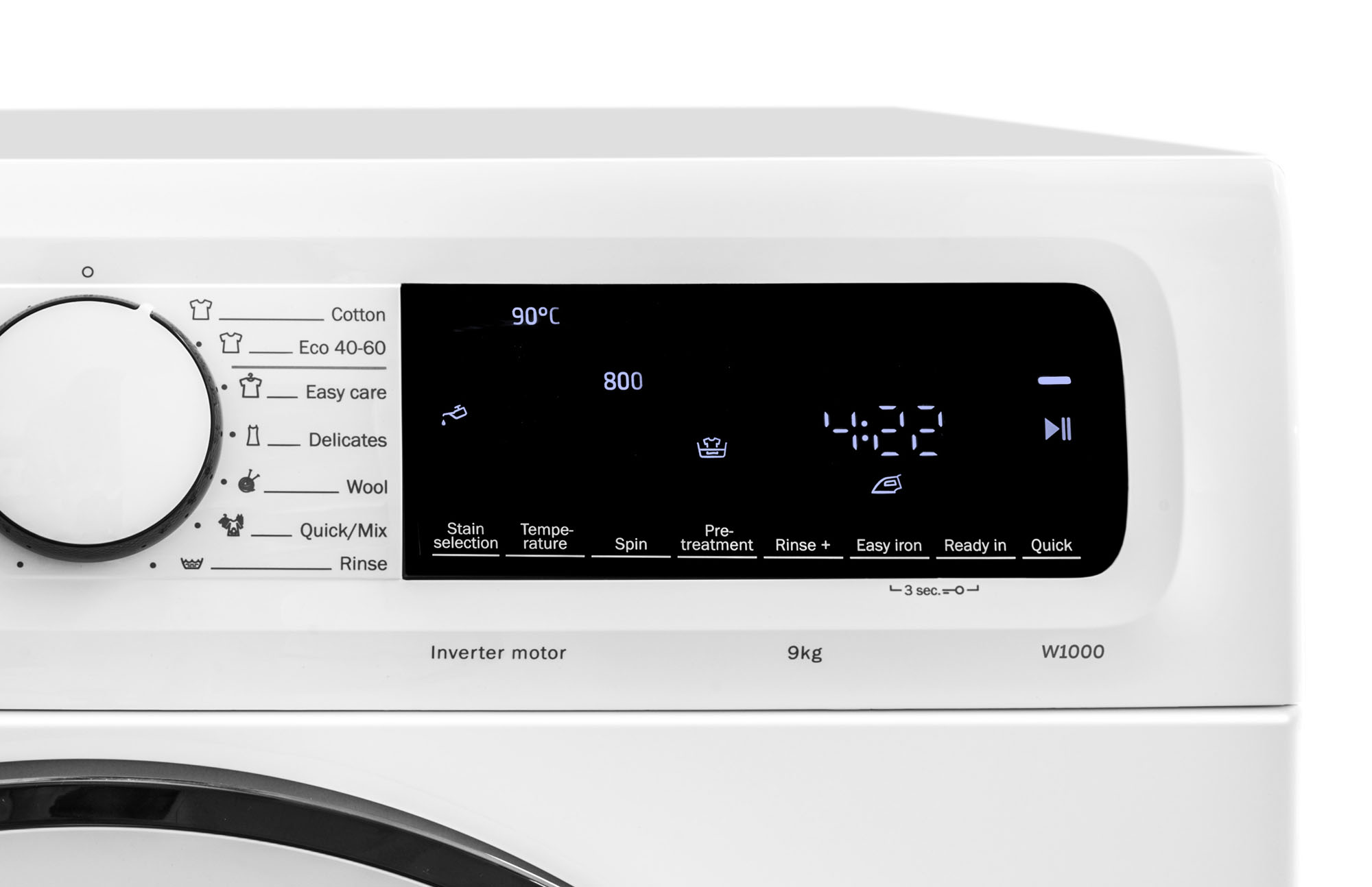 Moderní dotykový LED displej kromě své praktičnosti nabízí extra funkce. Můžete nastavit ukončení programu, a to až 24 hodin dopředu. Na displeji nechybí ani ukazatel, kolik času zbývá do konce praní.