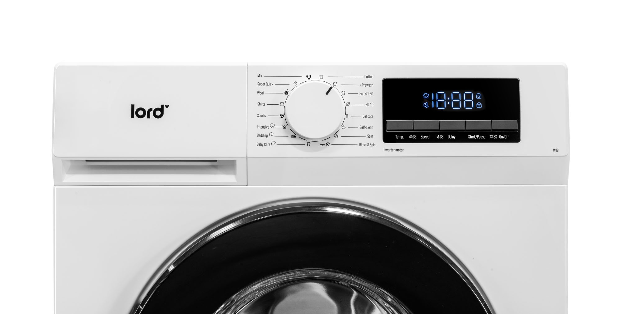 Mit der Waschmaschine LORD W18 erhalten Sie die perfekte Kombination aus Leistung, Einsparungen und Komfort. Lassen Sie sie direkt zu Ihnen nach Hause liefern und entdecken Sie einen neuen Standard in der Wäschepflege!