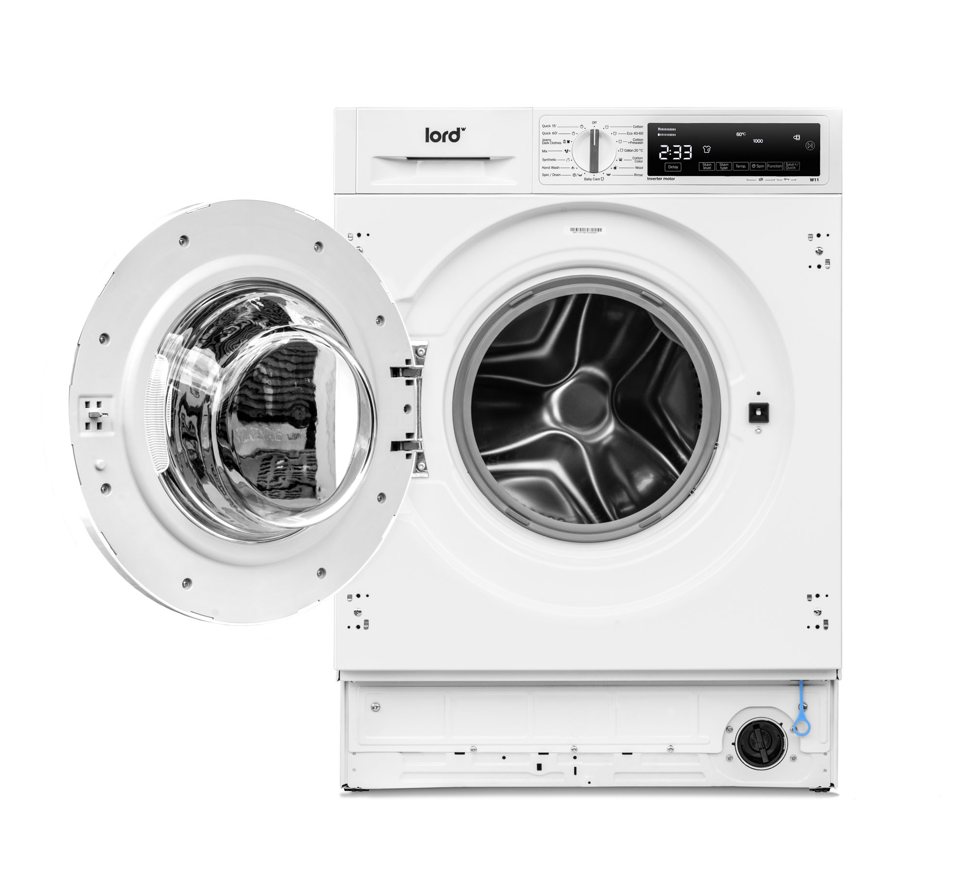 Вбудована пральна машина з фронтальним завантаженням, Максимальне завантаження: 8 кг, Споживання води: 48 л/цикл, Споживання електроенергії: 47 кВт·год/100 циклів, Клас енергоефективності: A, Рівень шуму під час віджиму: 74 дБ (A) re 1 pW, Максимальна швидкість віджиму: 1400/хв, 15 програм прання, 81,8 x 59,8 x 54,5 см